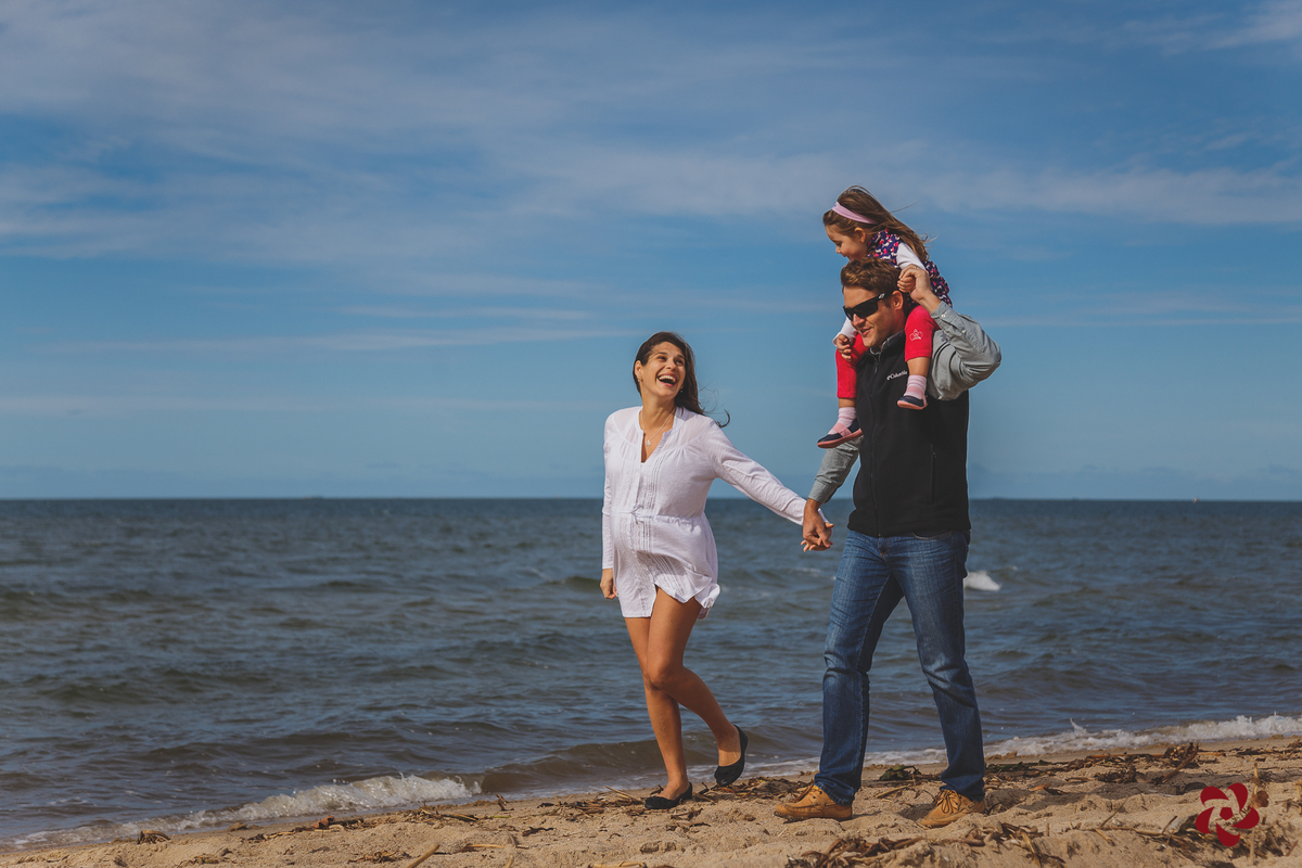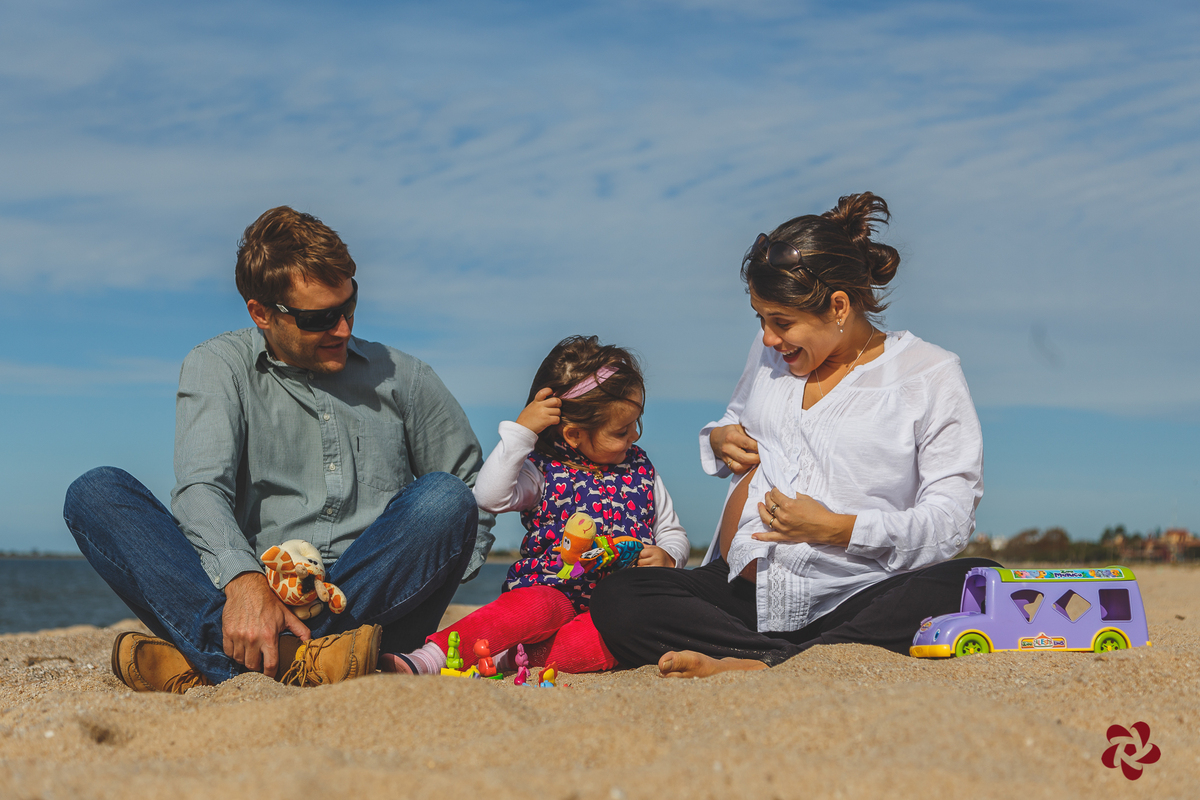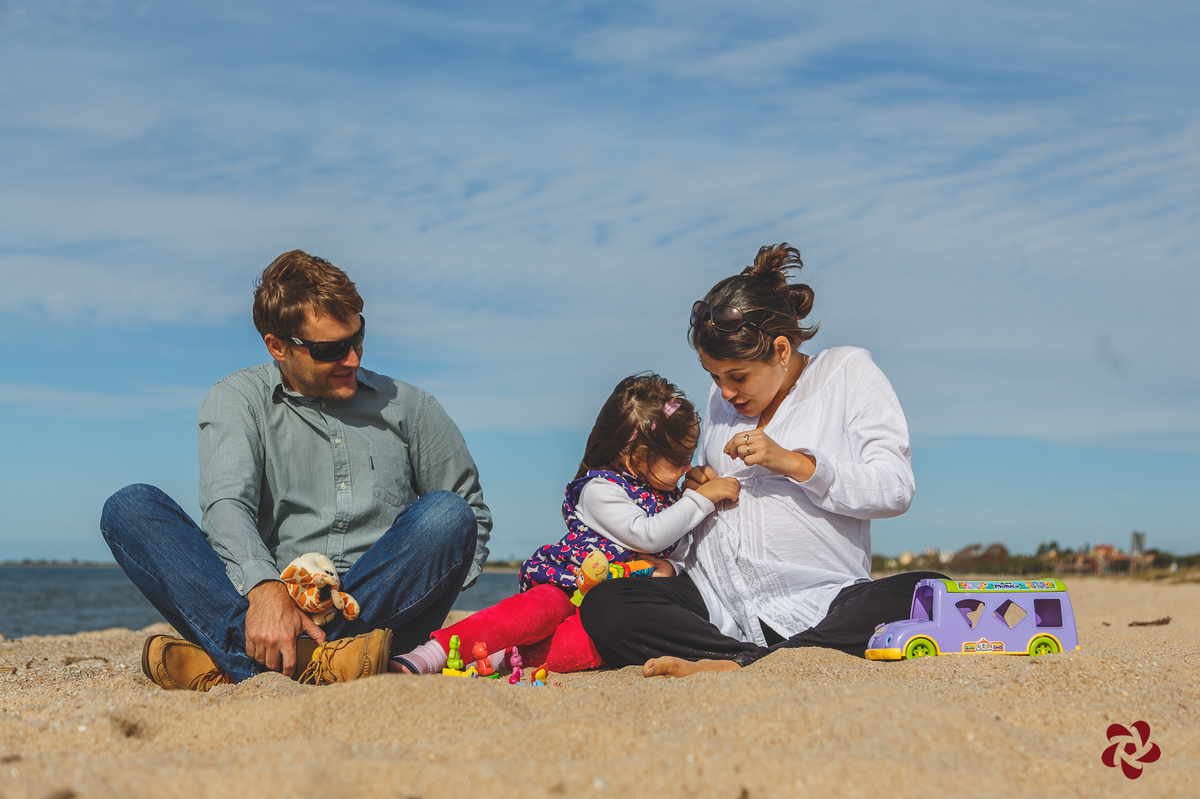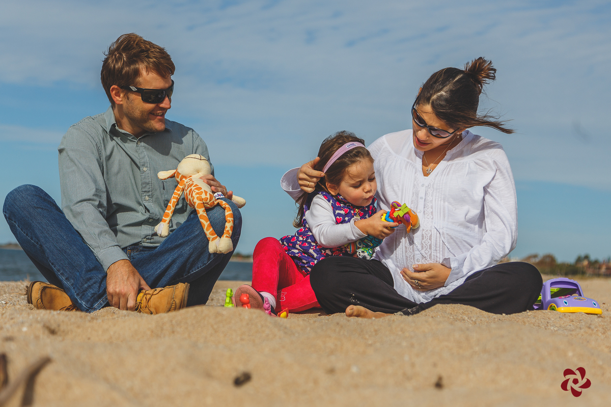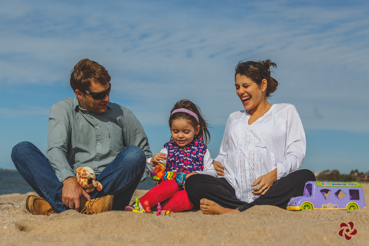 -Fotos de gestante. Davi + Lílian + Sarah à espera do Lucas. Praia do Laranjal. Pelotas/RS-