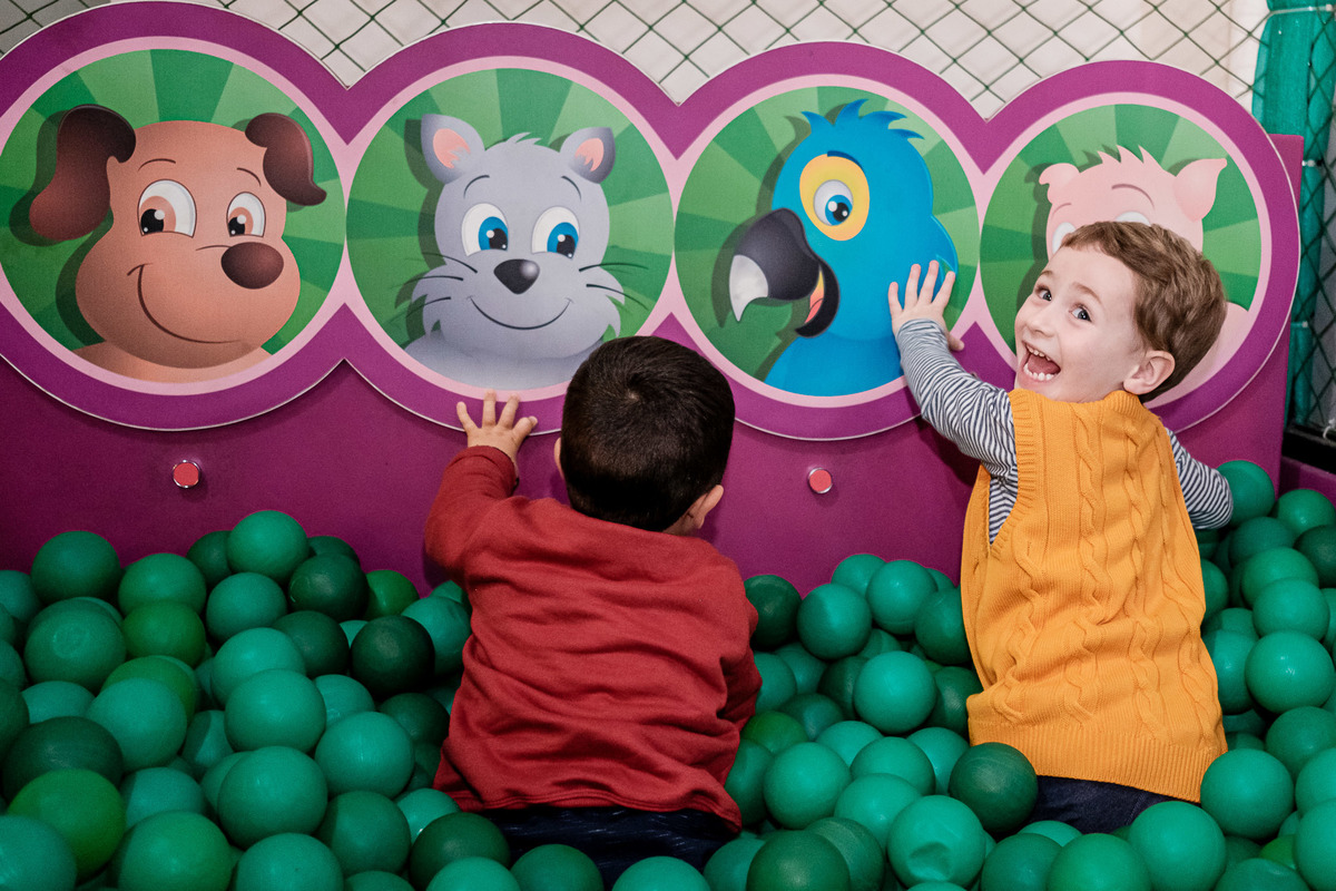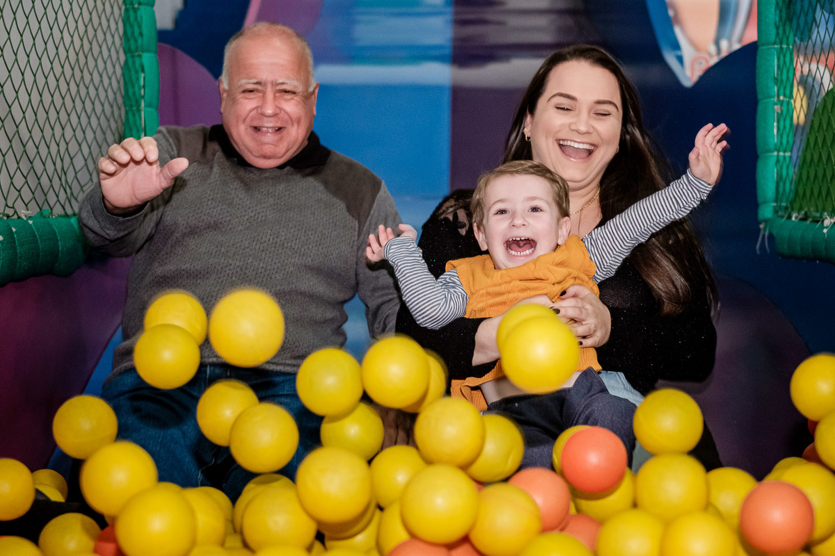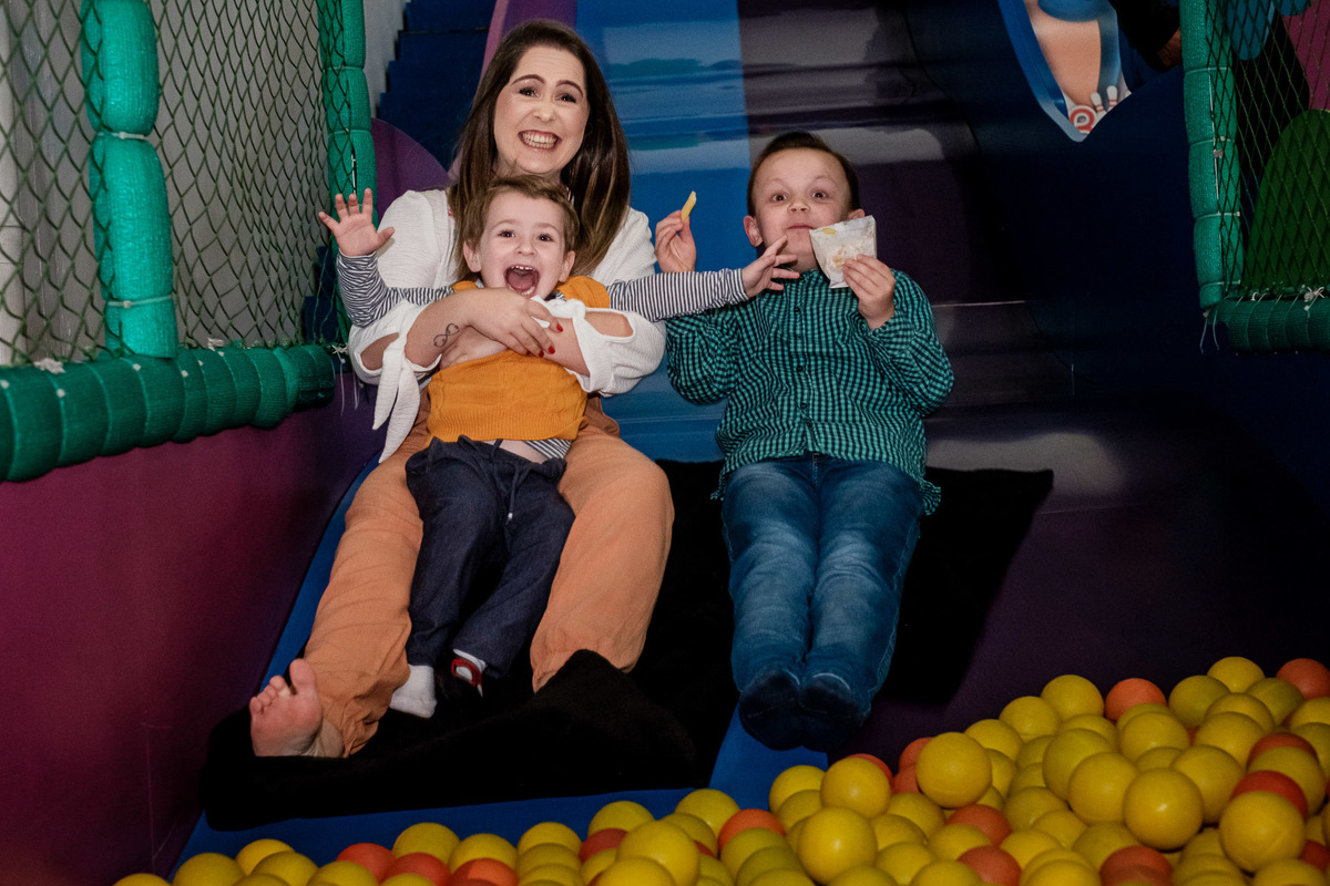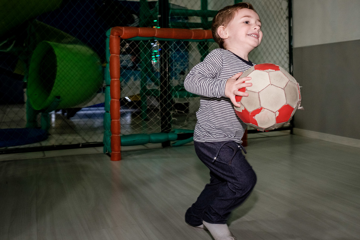 Quando chegaram ao salão de festas, Vicente e seus amigos se depararam com um cenário incrível, repleto de decoração temática e balões. Eles brincavam e se divertiam com os jogos e brinquedos do local e, claro, a família e os amigos não pouparam abraços e carinhos para ele!