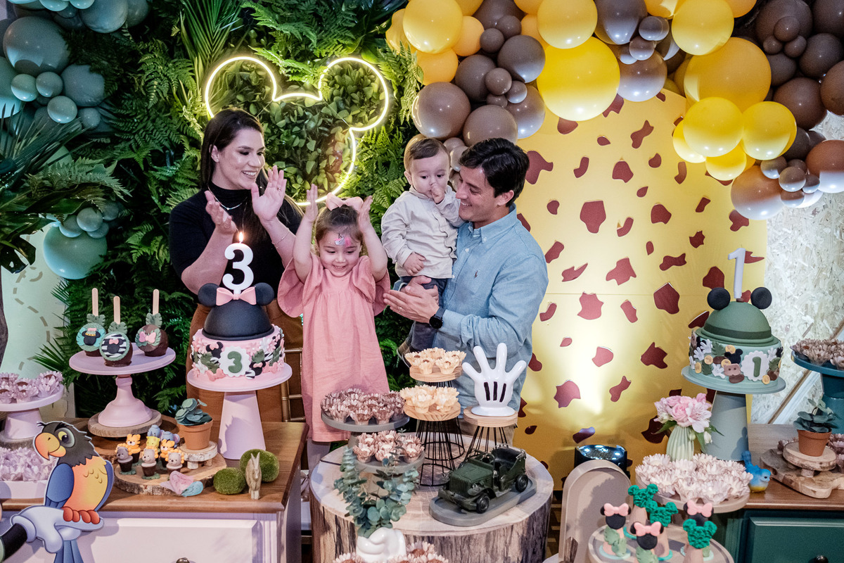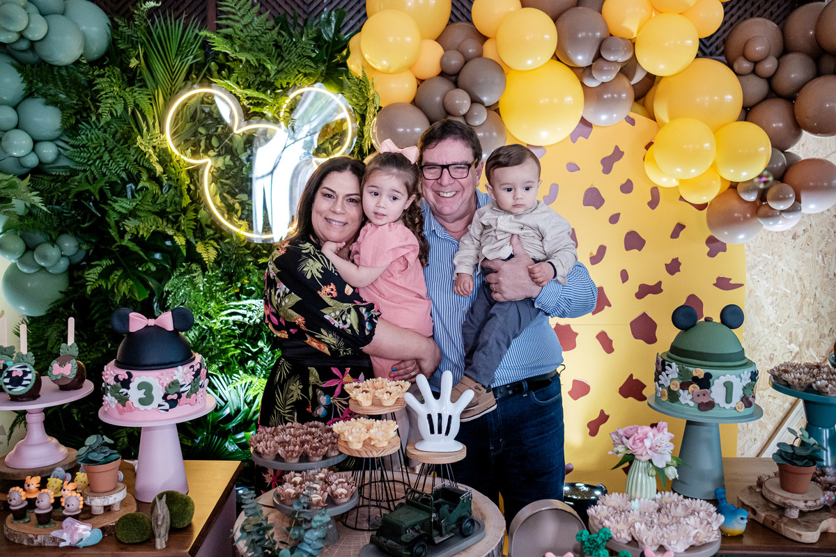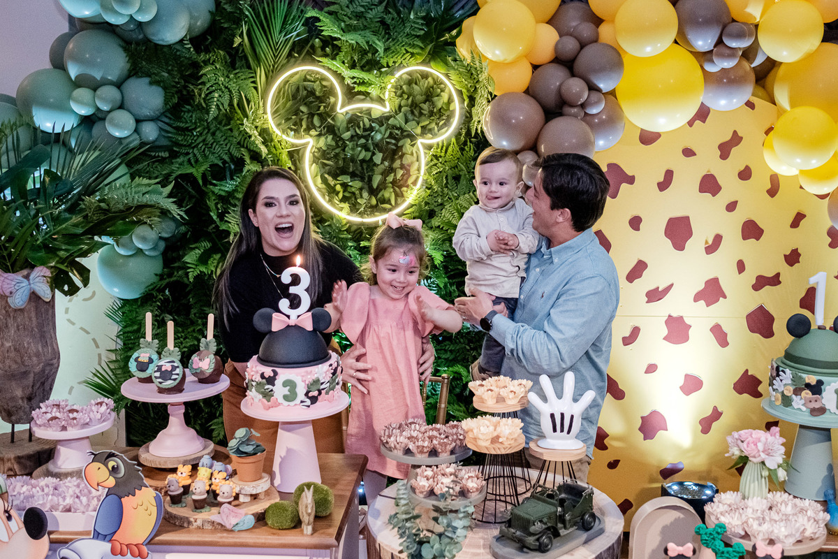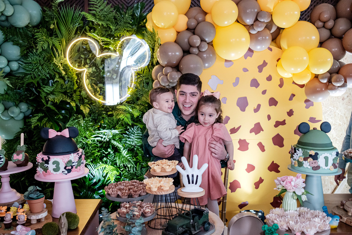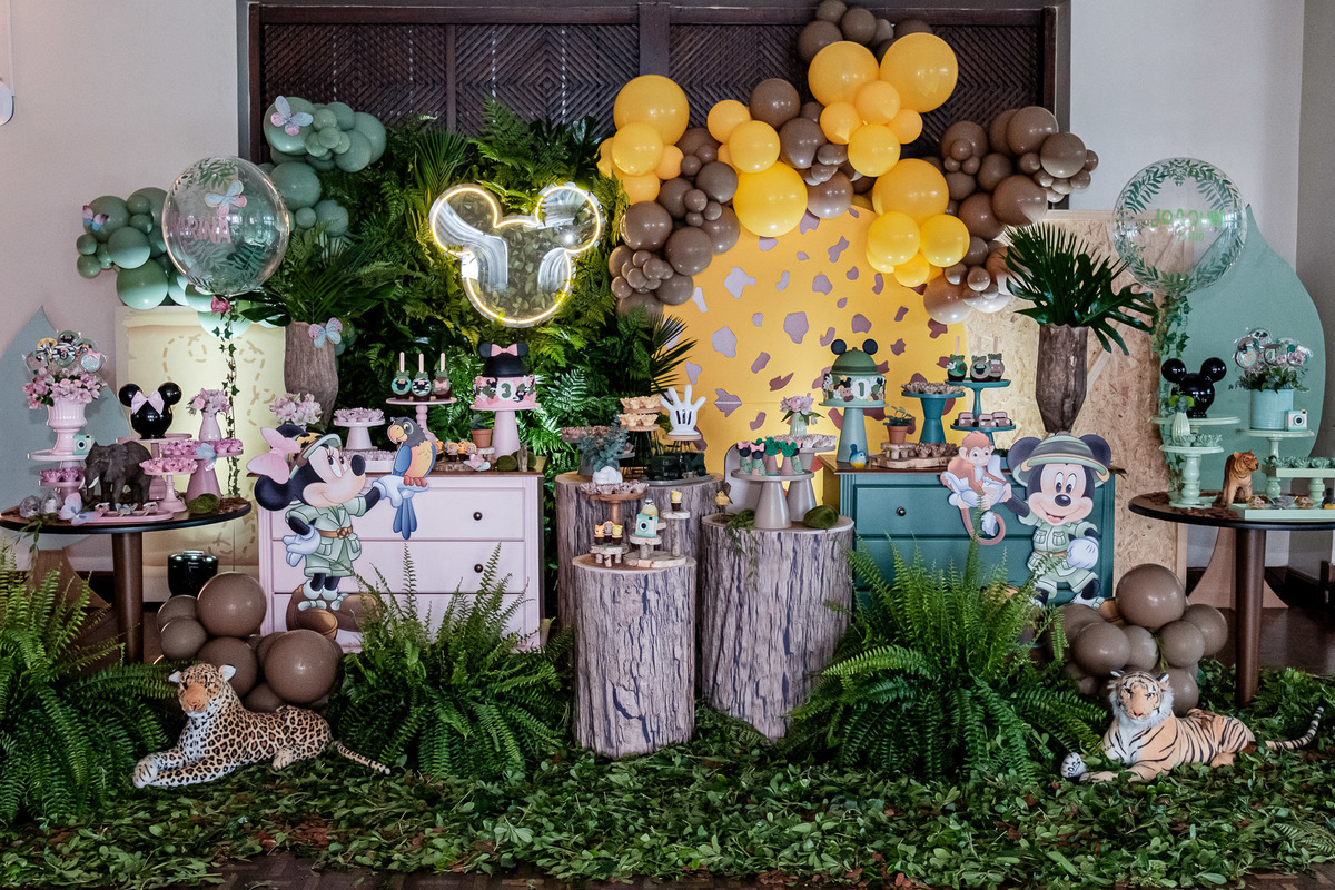 aniversario infantil irmãos Mickey e Minnie decoração safari da Minnie e do Mickey safari pelotas festa infantil fotografia