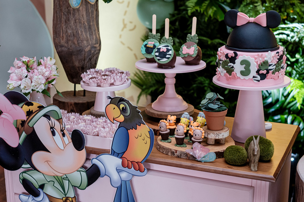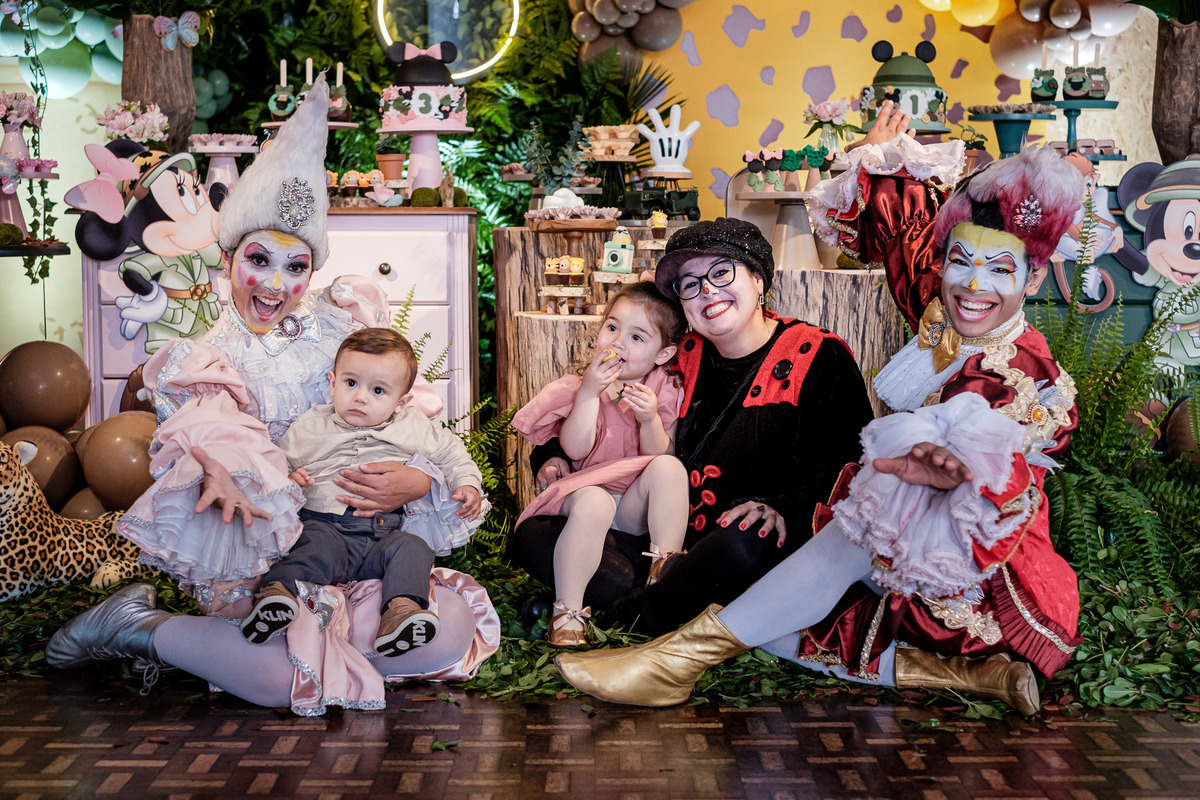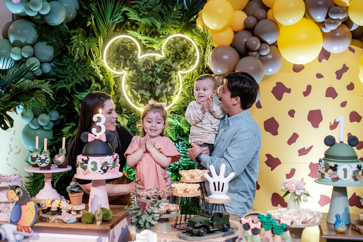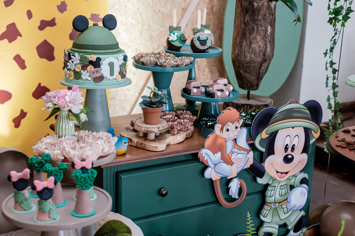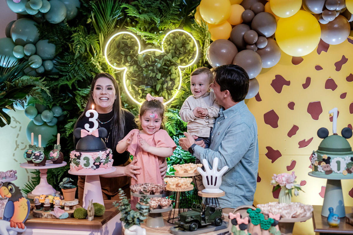 aniversario infantil irmãos Mickey e Minnie decoração safari da Minnie e do Mickey safari pelotas festa infantil fotografia