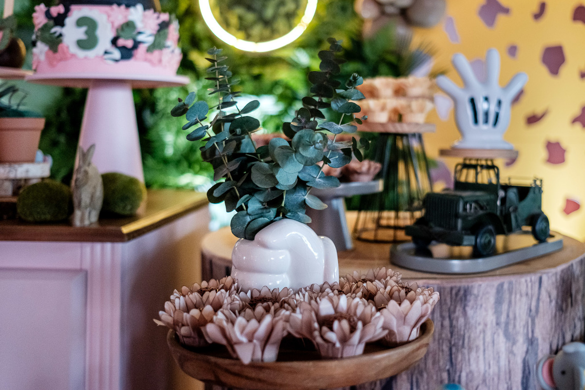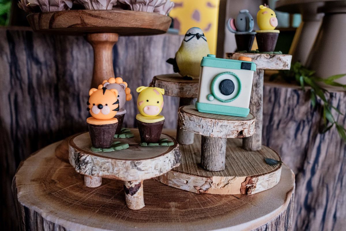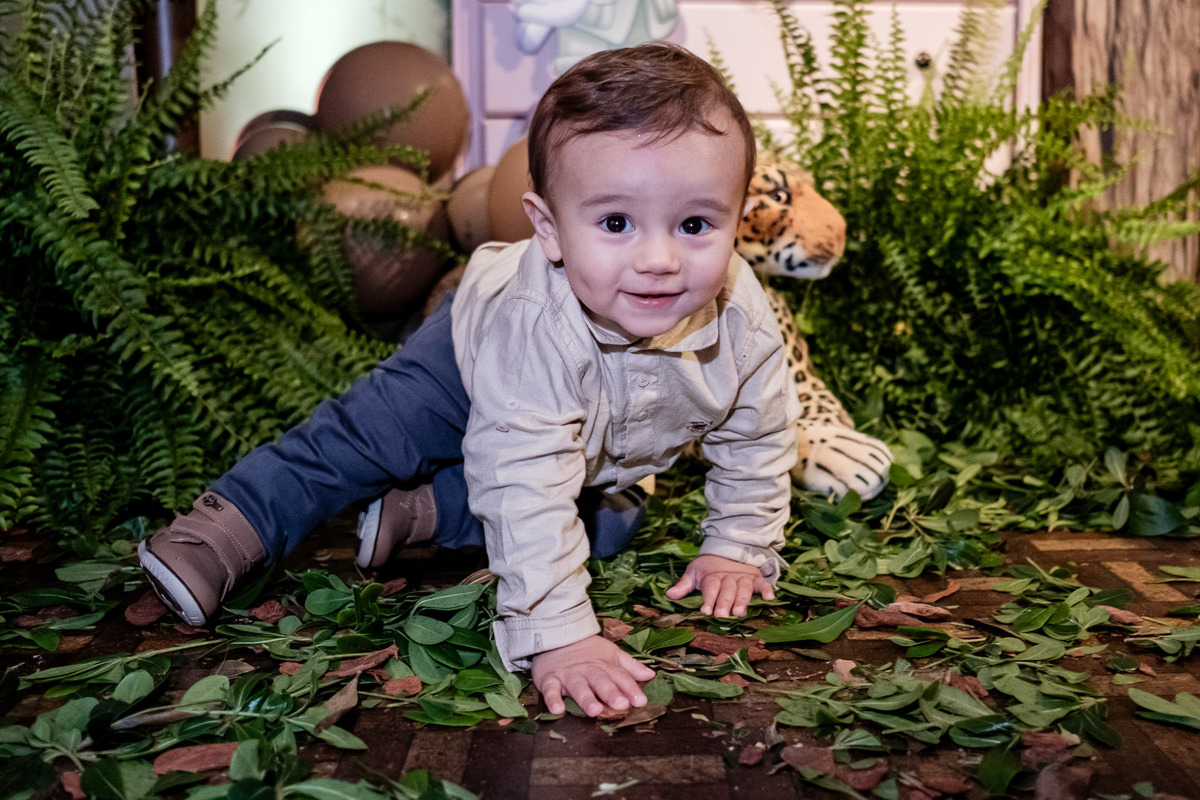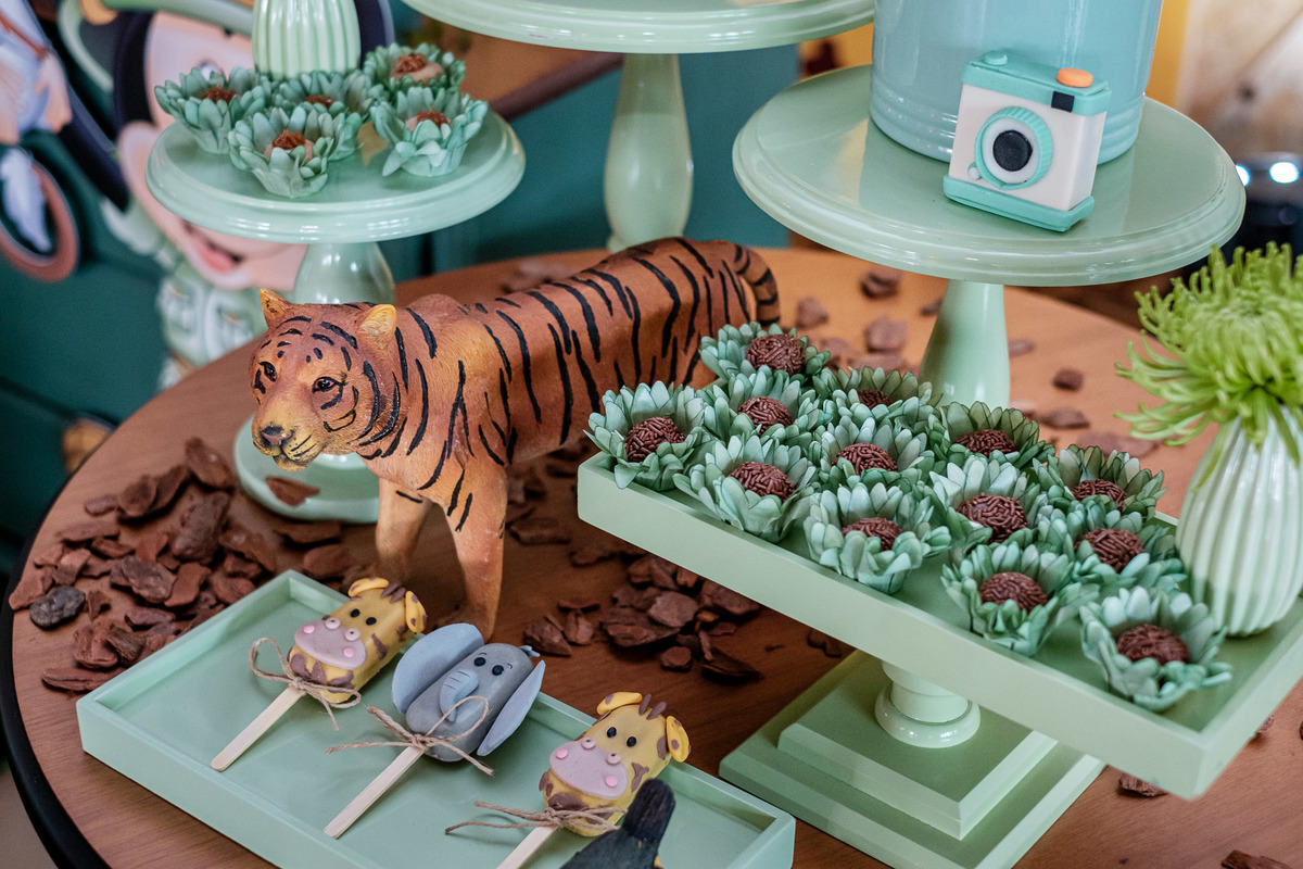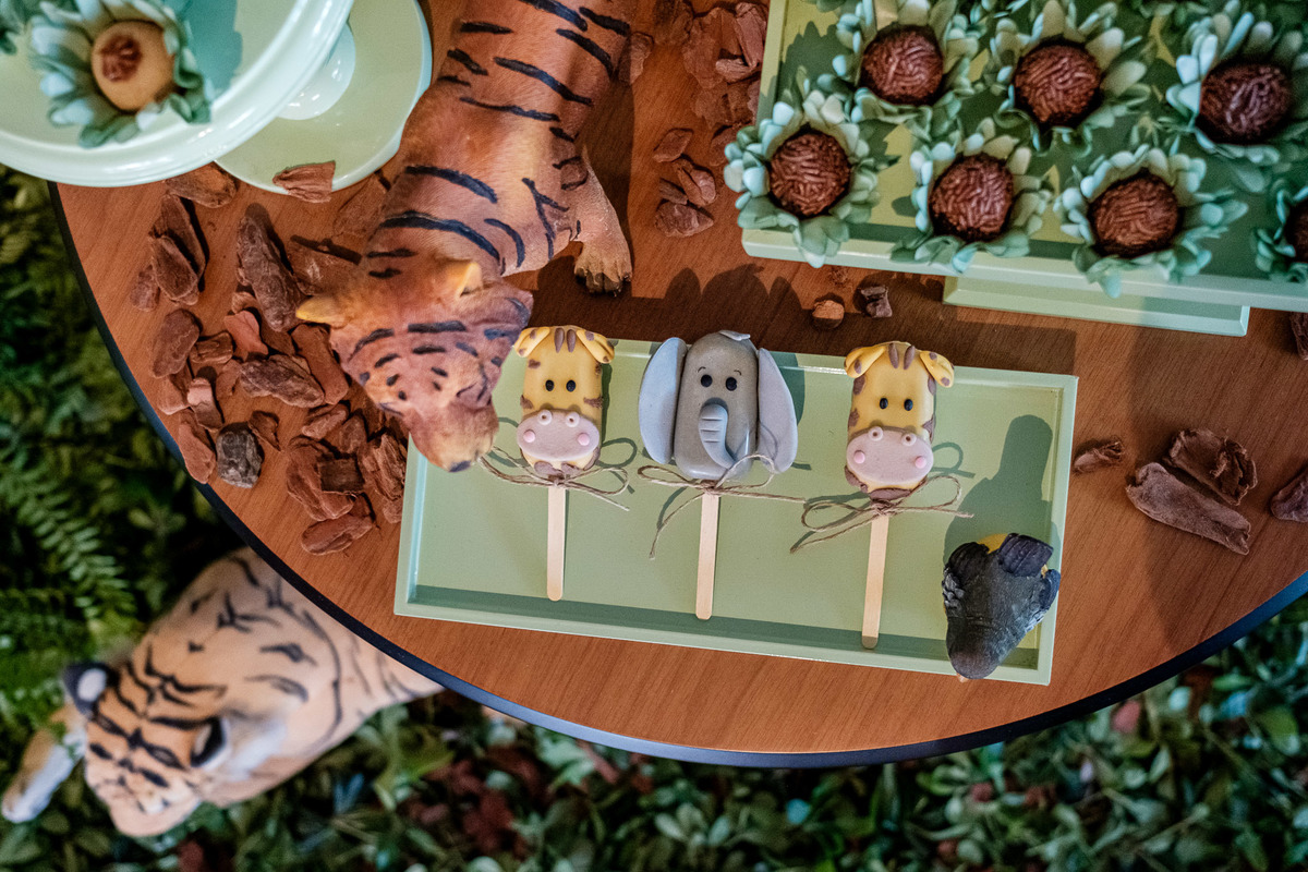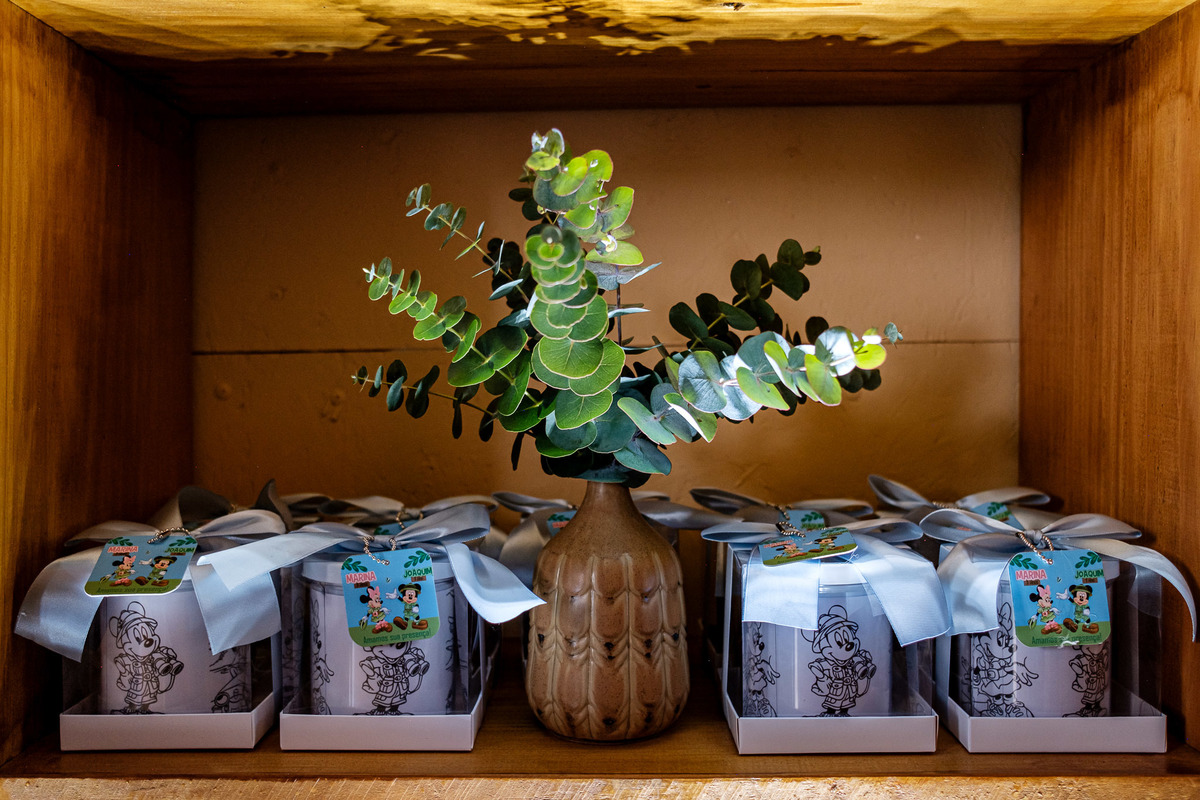 Quando chegaram ao salão de festas, Marina e Joaquim se depararam com um cenário incrível, repleto de animais selvagens, árvores e até mesmo a presença dos seus personagens favoritos, Mickey e Minnie. Marina e Joaquim se divertiram muito brincando, explorando o safari e tirando fotos com seus personagens favoritos.