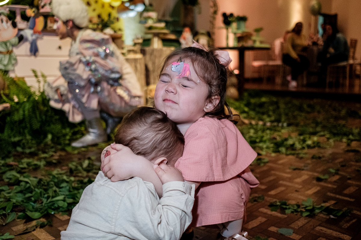 Teve Parabéns e as velinhas sopradas com alegria e amor! Foi uma festa inesquecível para os irmãos e todos os presentes, e eles já estão planejando a próxima aventura.
