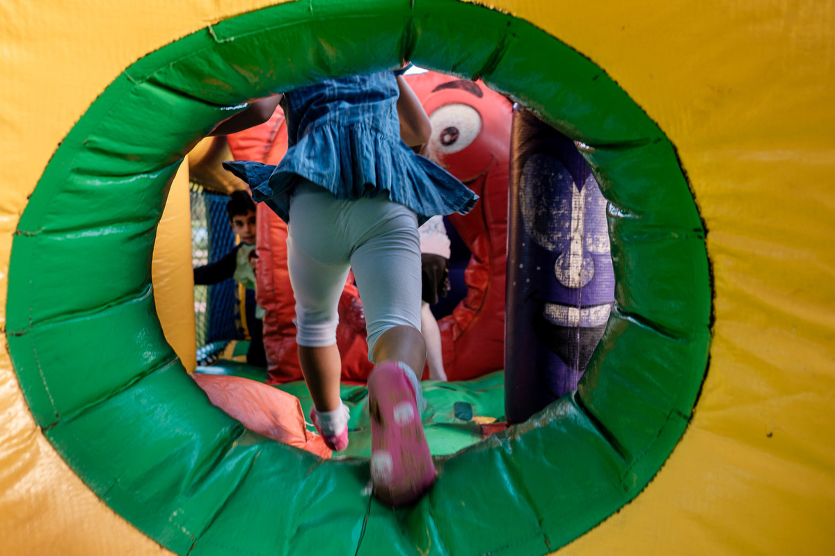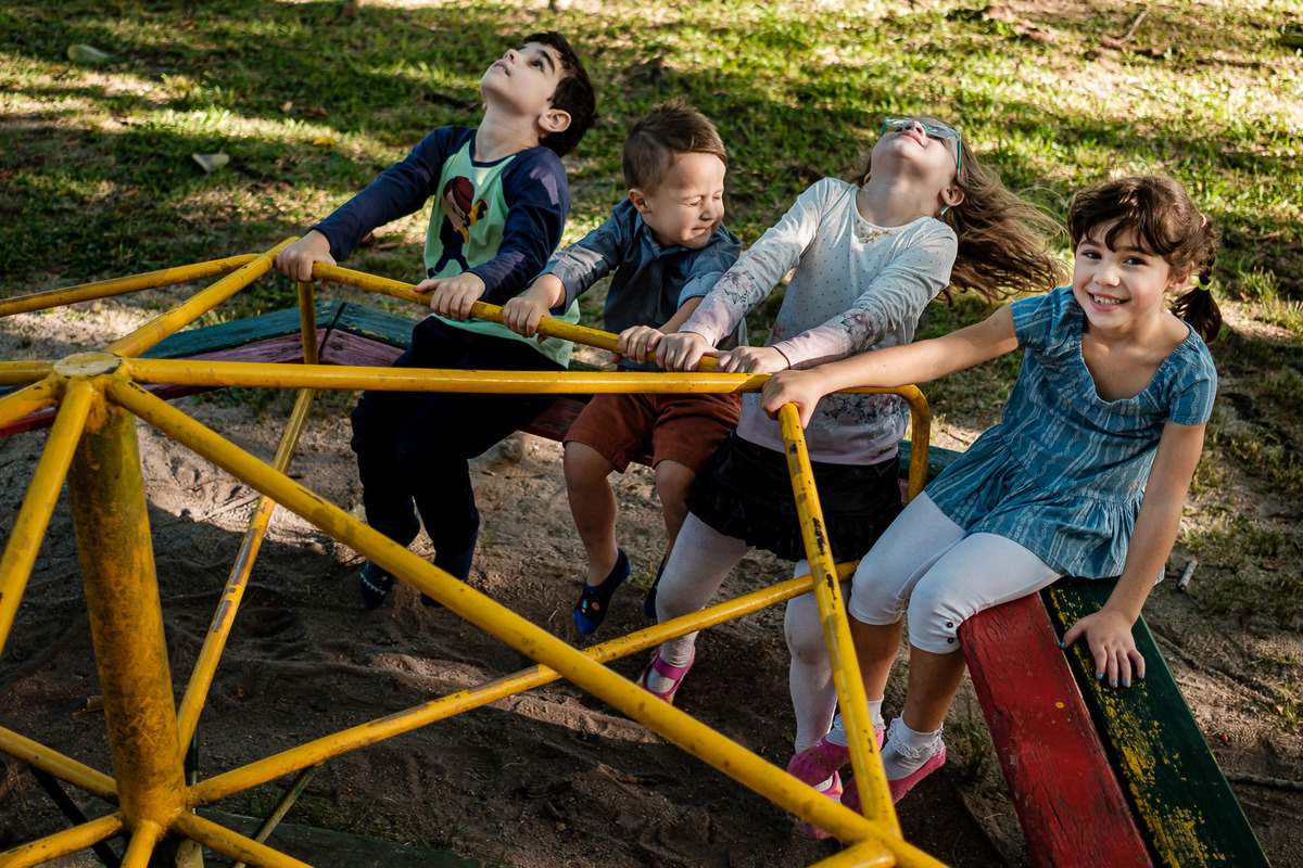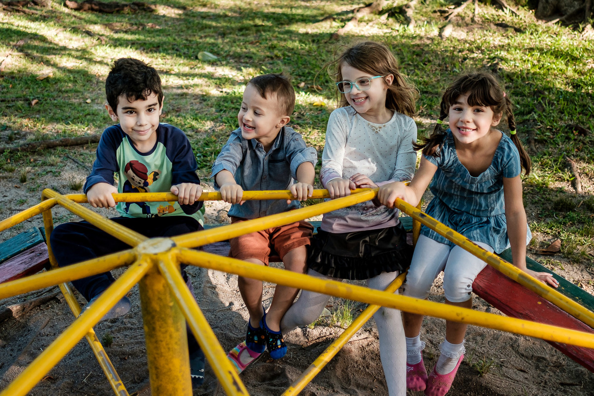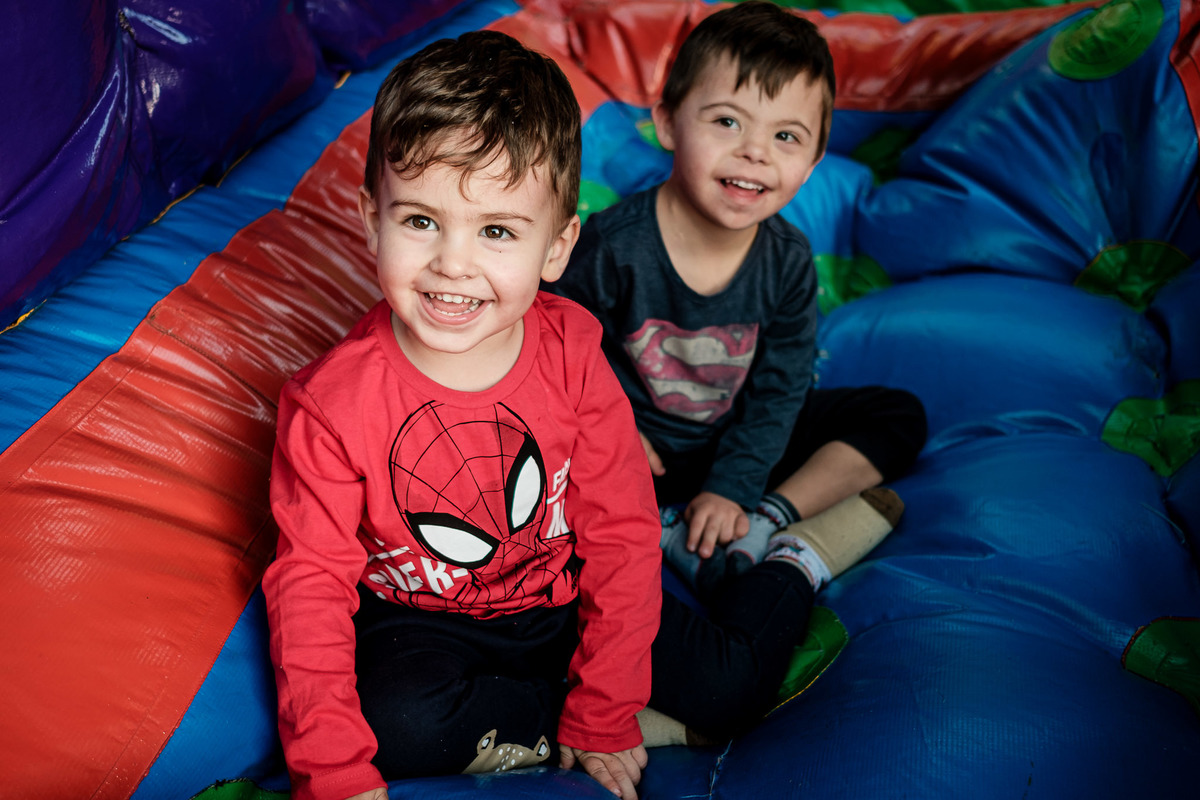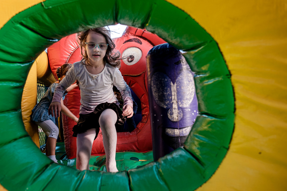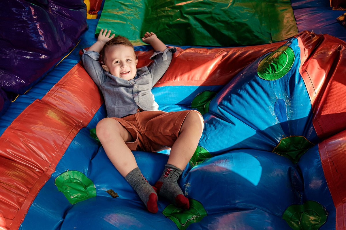 Rômulo estava feliz e seus olhos brilhavam de emoção ao ver todos os amigos e familiares reunidos para comemorar seu aniversário. Ele brincou e se divertiu com seus amigos, correndo e se divertindo com os brinquedos infláveis e na pracinha infantil que havia no local.