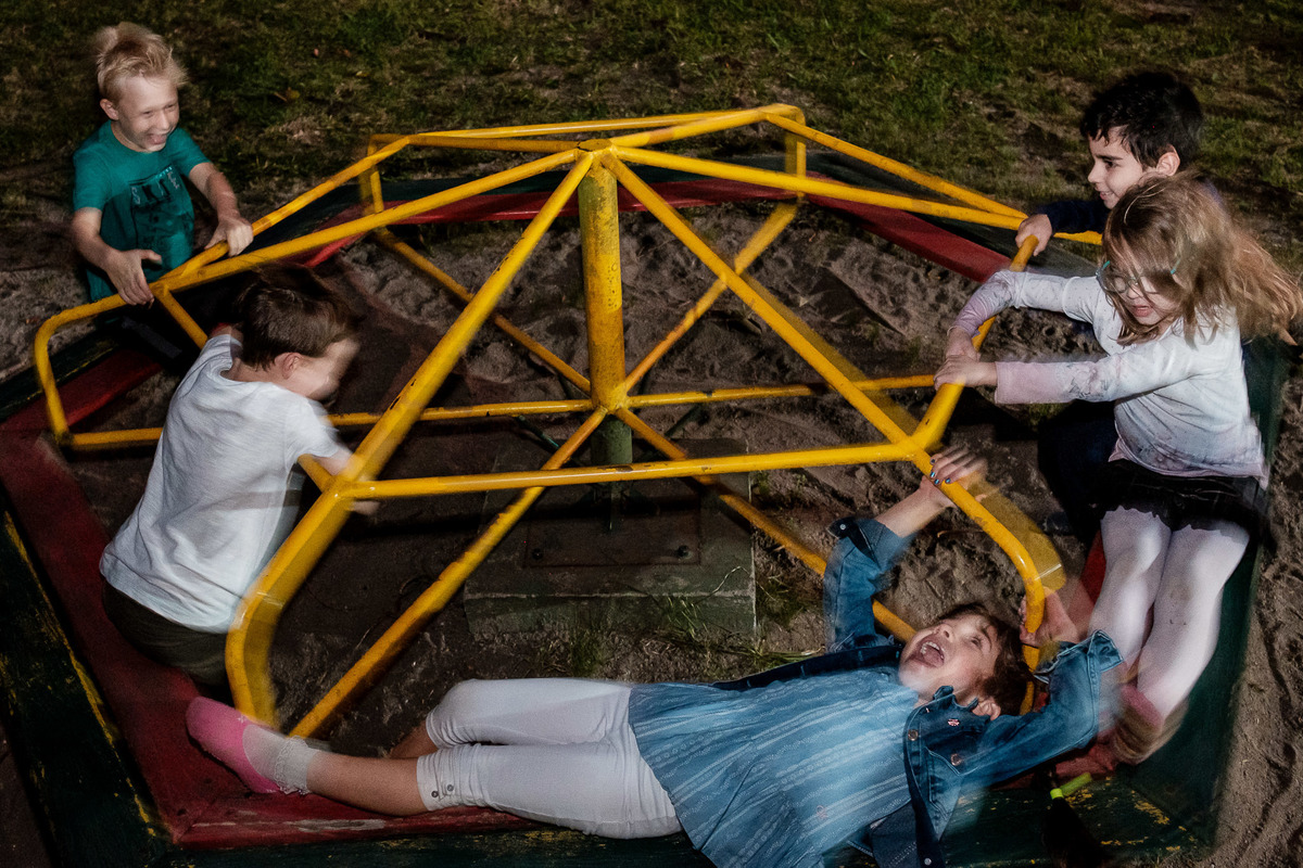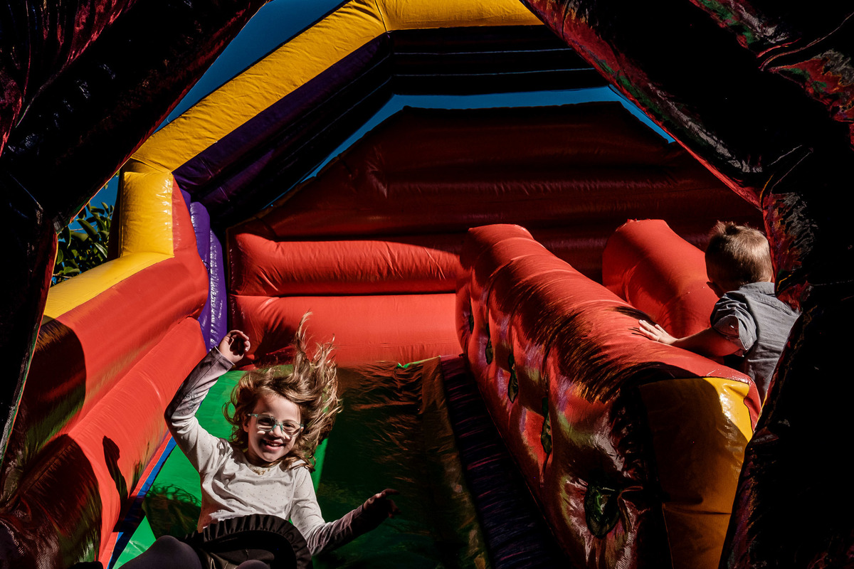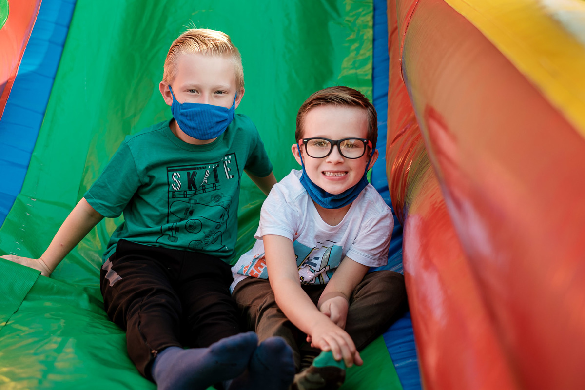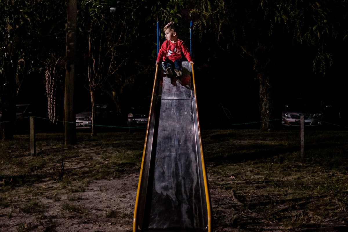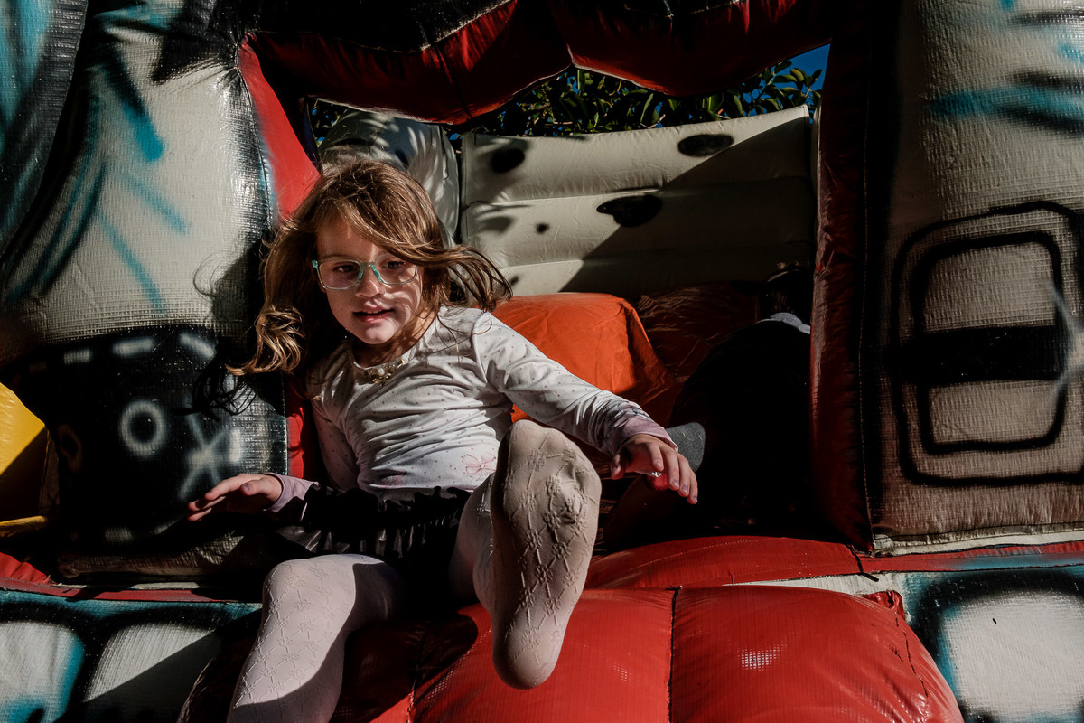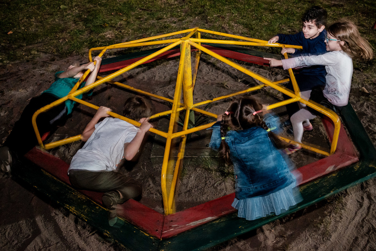 Rômulo estava feliz e seus olhos brilhavam de emoção ao ver todos os amigos e familiares reunidos para comemorar seu aniversário. Ele brincou e se divertiu com seus amigos, correndo e se divertindo com os brinquedos infláveis e na pracinha infantil que havia no local.