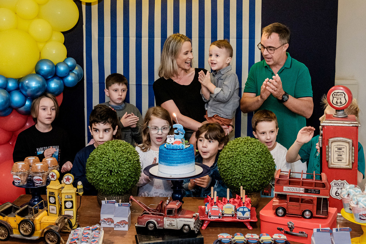 O aniversário de 3 anos do pequeno Rômulo foi uma verdadeira celebração de amor e alegria! A festa foi realizada em um clima de verão e um belo dia de sol. A decoração incluía balões coloridos e uma linda mesa de bolo e doces decorada com tema de carros, que é a paixão do pequeno Rômulo.