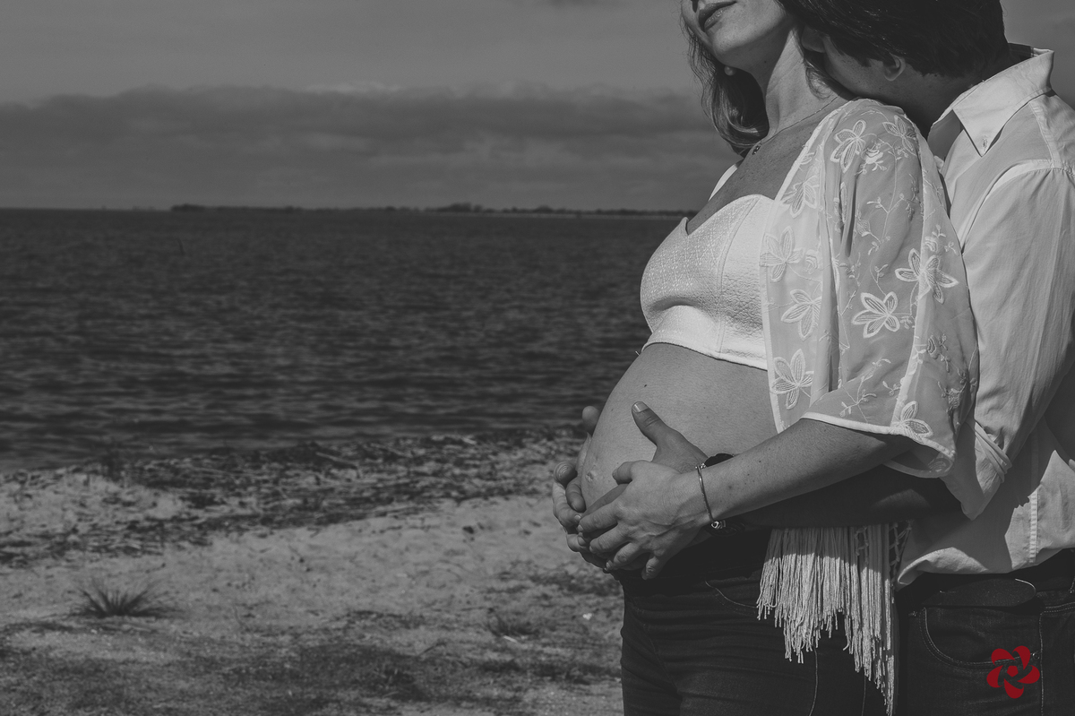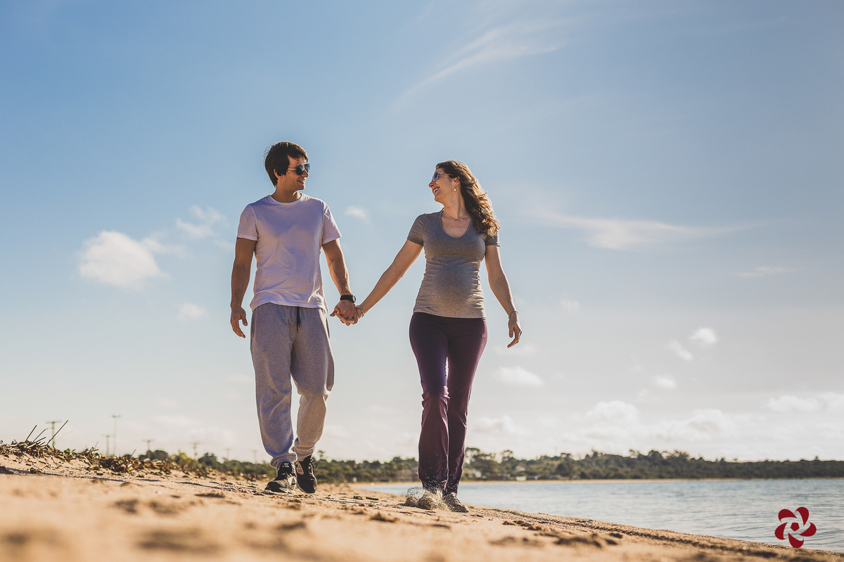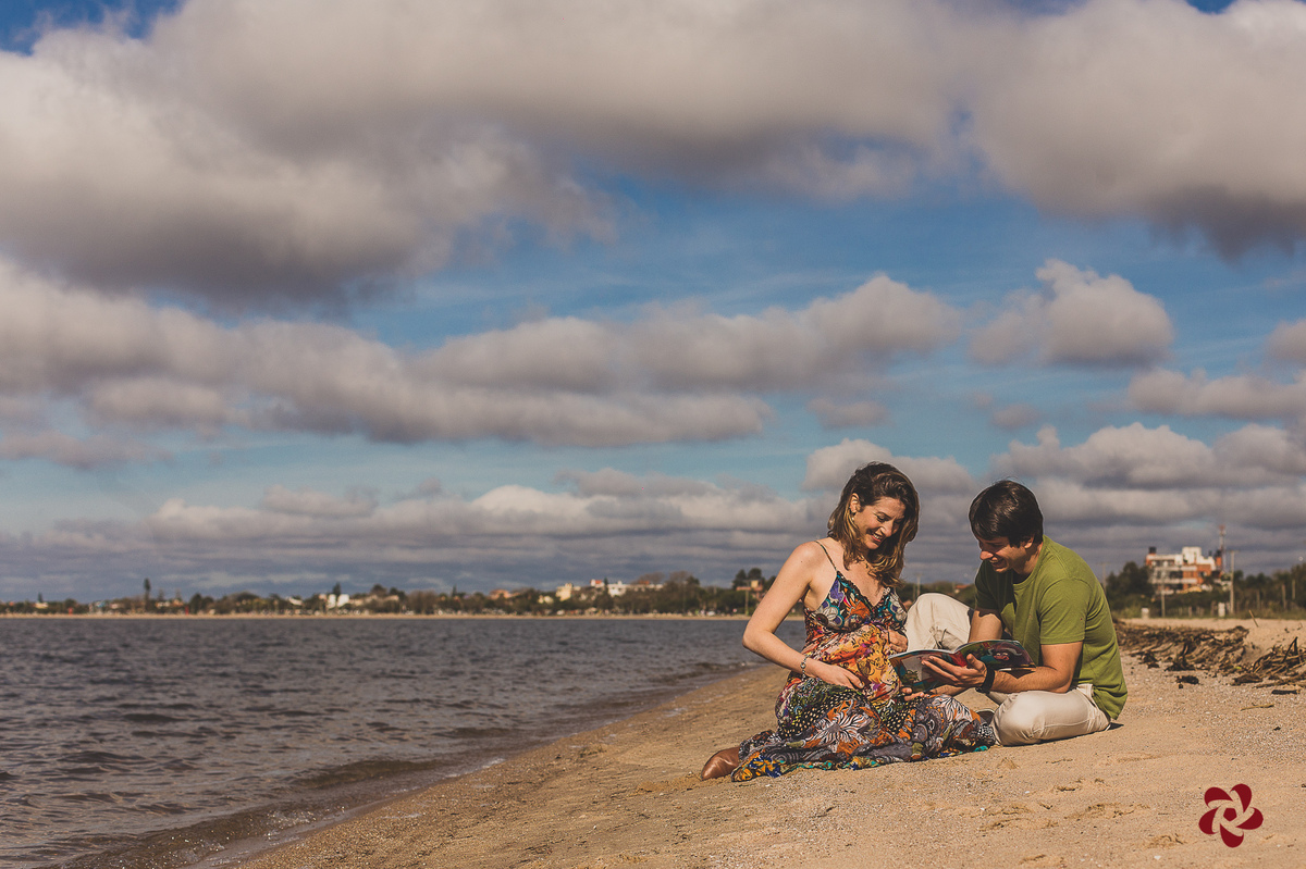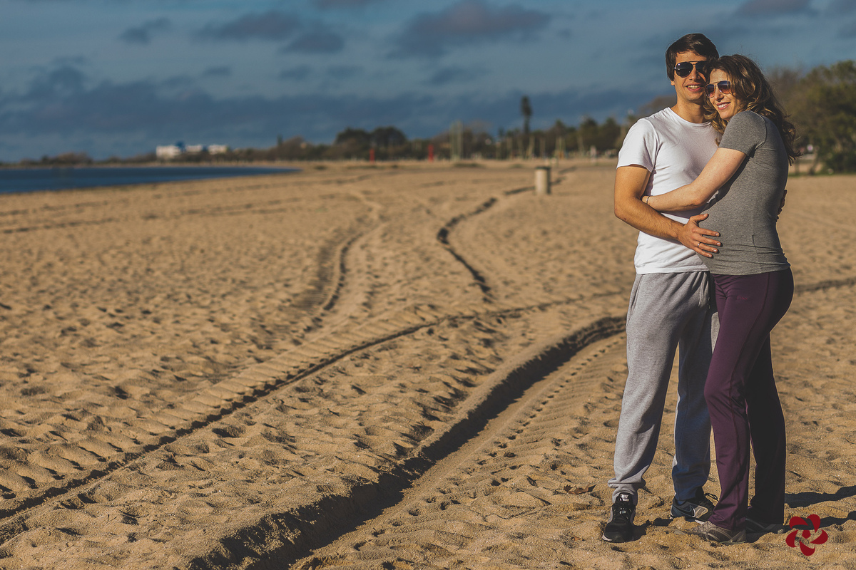 -Ensaio de gestante Romina+Fernando à espera de Camus. Praia do Laranjal. Pelotas/RS-